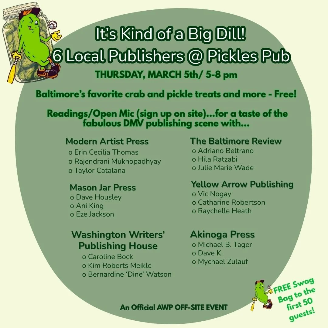 Kind of a Big Dill: Writers from 6 local Publishers @ Pickles Pub, a Baltimore classic (& open mic!)